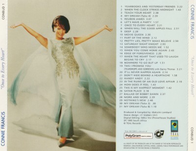 Thanks to the technological `miracle' of compact discs, and PolyGram South Africa's commendable awareness of the market that exists for Connie Francis compilations that do not include Who's Sorry Now?, Stupid Cupid or Lipstick On Your Collar, digitalising of her back catalogue will continue. The guaranteed success of this generous set of `debut' performances will doubtless whet the appetite for companion volumes of still plentiful unreleased titles.