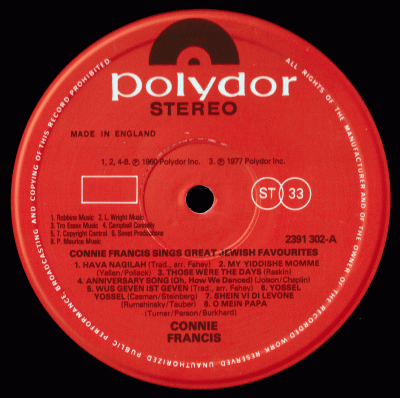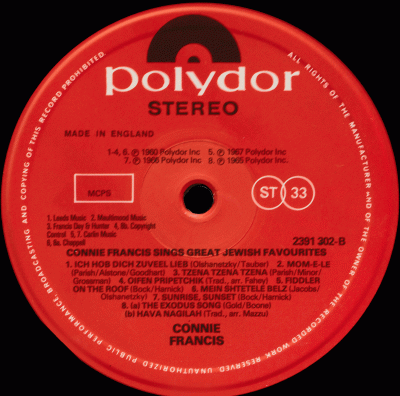 Connie Francis Sings Jewish Favourites