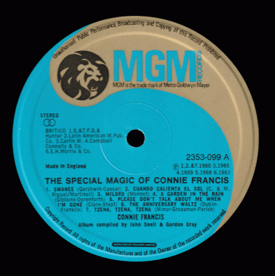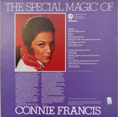 International favourites in every sense, these songs are given new meaning and expression by Connie Francis, the world's most successful female recording artist. But then, this is her unique talent and artistry...the Special Magic that IS Connie Francis.