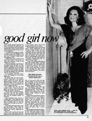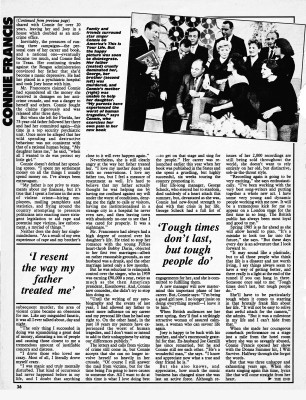 Few people may now remember that she was once the world’s most successful female singer, whose records sold more than the combined tallies of Diana Ross and Barbra Streisand today. Fewer still may be able to recall just one of her 100 hit songs, most of them translated into nine languages, which stormed into pop charts all over the world in the late Fifties and early Sixties. But they’ll remember the rape, all right—and the divorces, the committal to mental institutions, and the gunning down of her lawyer brother, apparently in a gangland vendetta. No wonder, they’ll surmise, that we haven't heard much of Connie Francis lately. But the reason for her silence isn’t what it so justifiably could be—a deep, suspicious fear of putting her life up for analysis and speculation. Connie, who's now 45, is preparing to share her tears in a book and film about her life.